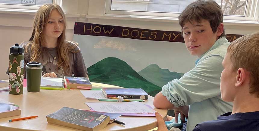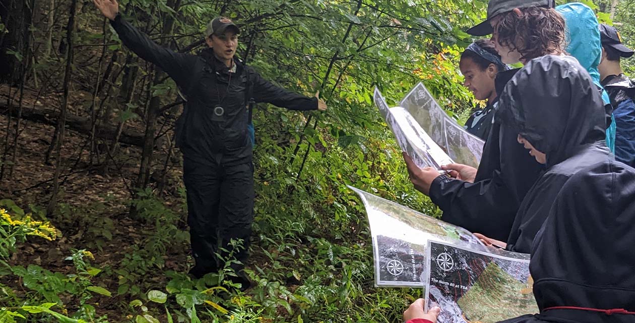 Students explore Vermont history and geography. Through observation, research, and data analysis, they learn the ecological significance of individual tree species and of Vermont’s forests. In 2025, students read Gather and write their own memoir to explore how place shapes identity. Inspired by Andy Goldsworthy, students create sculptures out of natural materials. Students put their map-reading and tree identification skills to the test on our all-school hike up Mount Cardigan.