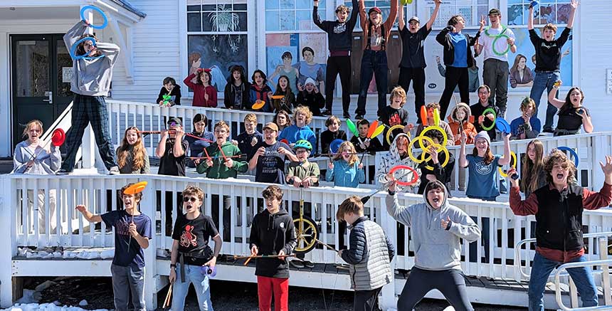 A two-week interdisciplinary program where students learn circus skills, craft sets and props, perform music, and work collaboratively toward a live performance attended by over 600 community members.